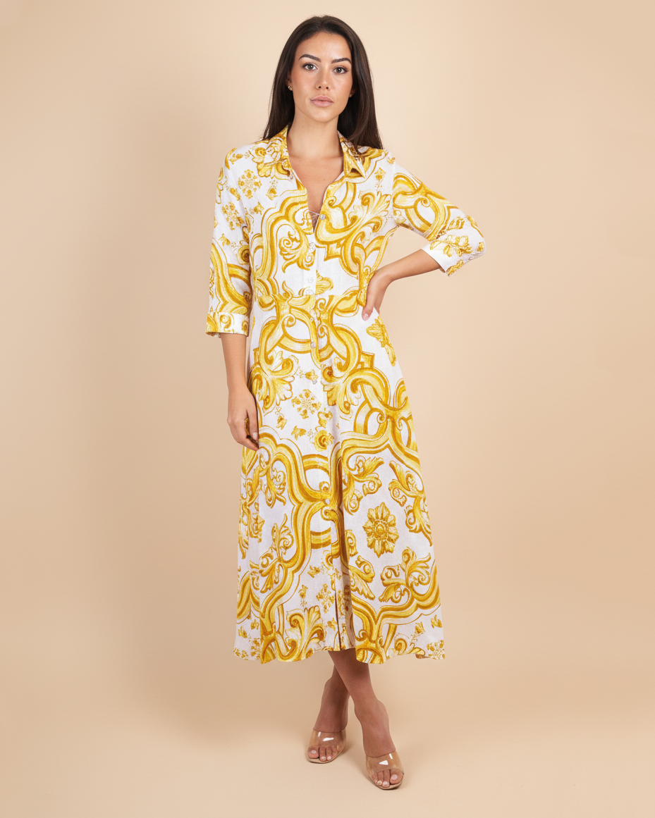 Midi shirt dress available in many colors and print, with pockets and buttons all the way down.