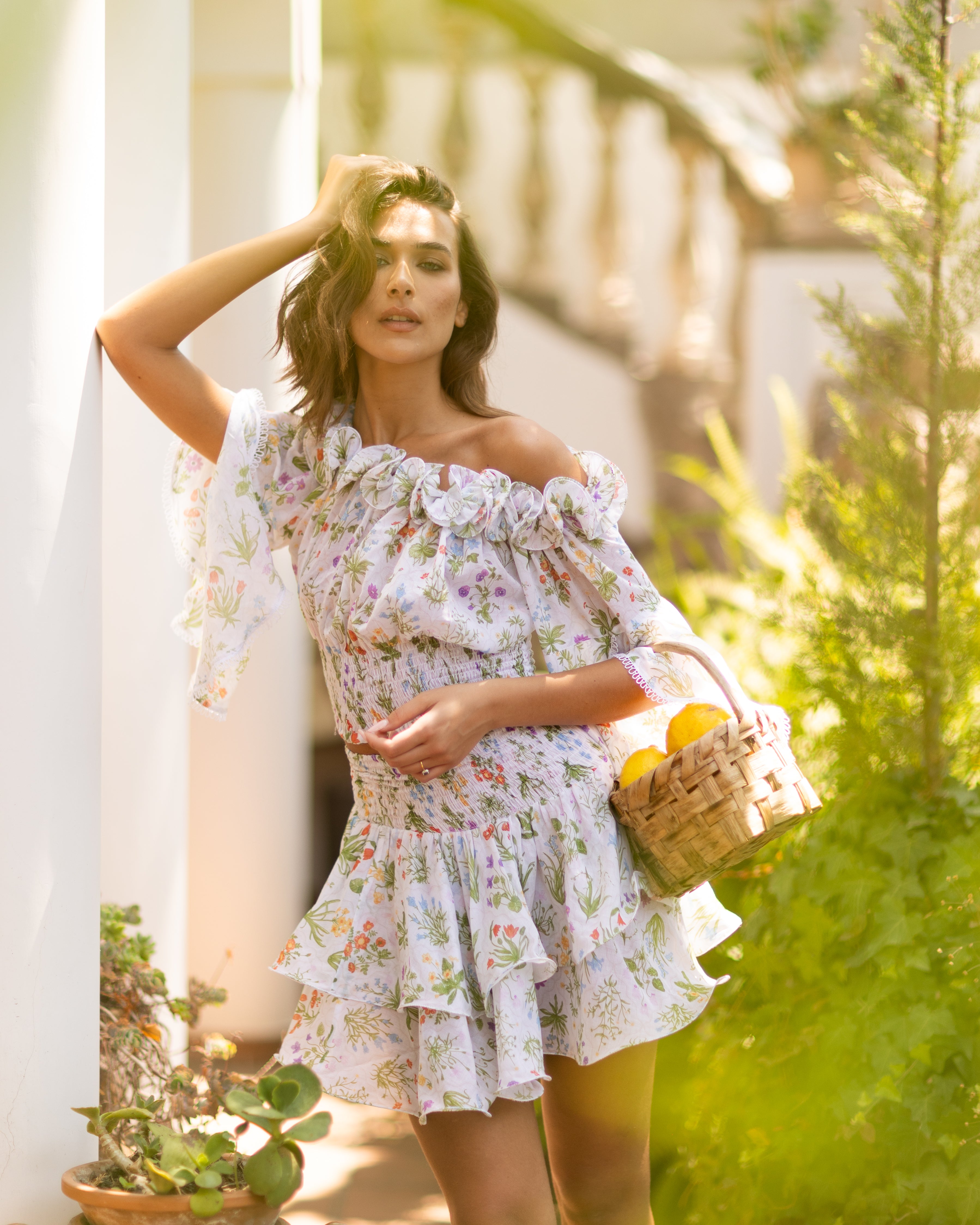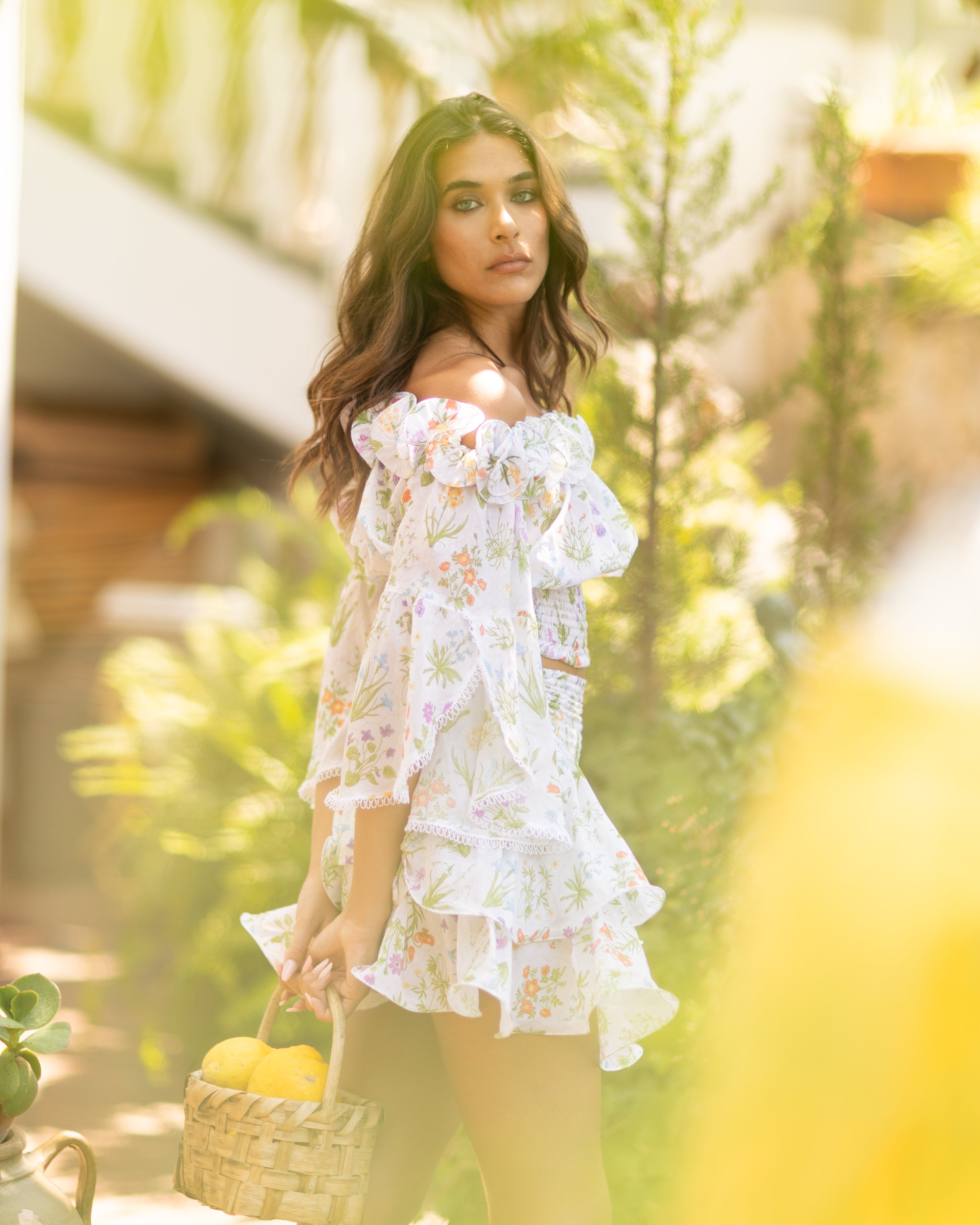 Sophisticated short skirt designed for those who appreciate refined details. Featuring an elasticized waistband for a comfortable, secure fit, this piece showcases a striking double-layer ruffle construction that adds movement and dimension. The cascading volants create an elegant silhouette with subtle drama, perfect for transitioning from day to evening wear. Crafted with attention to couture-level tailoring, this skirt combines comfort with contemporary style, making it an essential addition to any discerning wardrobe.