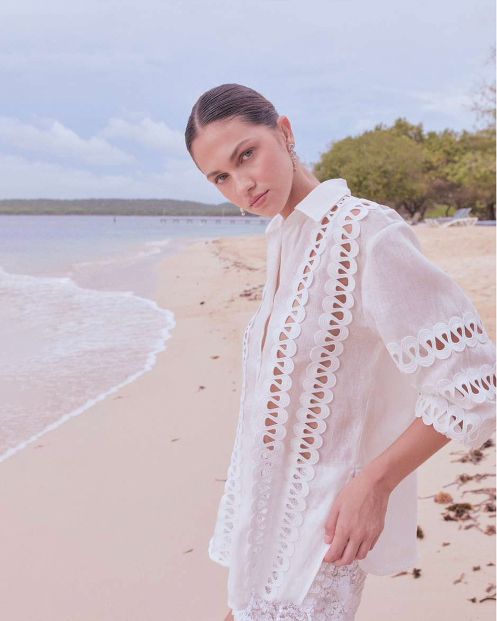 Elegant and romantic, this embroidered midi dress features a deep V-neckline, long sleeves, and a softly gathered skirt that moves with ease. The intricate floral design is complemented by a defined waist and scalloped trim, while the 100% cotton lining offers breathable comfort. Perfect for daytime events or dressed-up evenings.