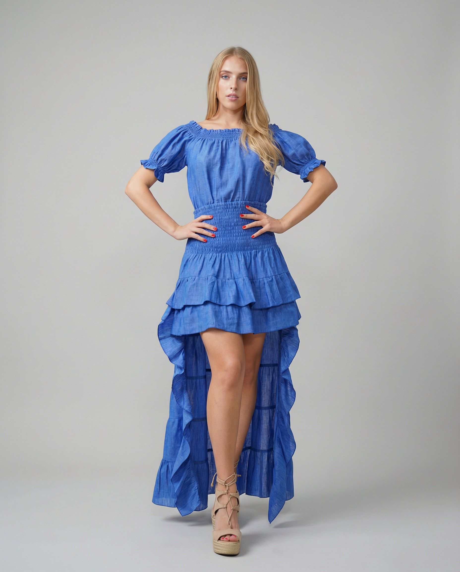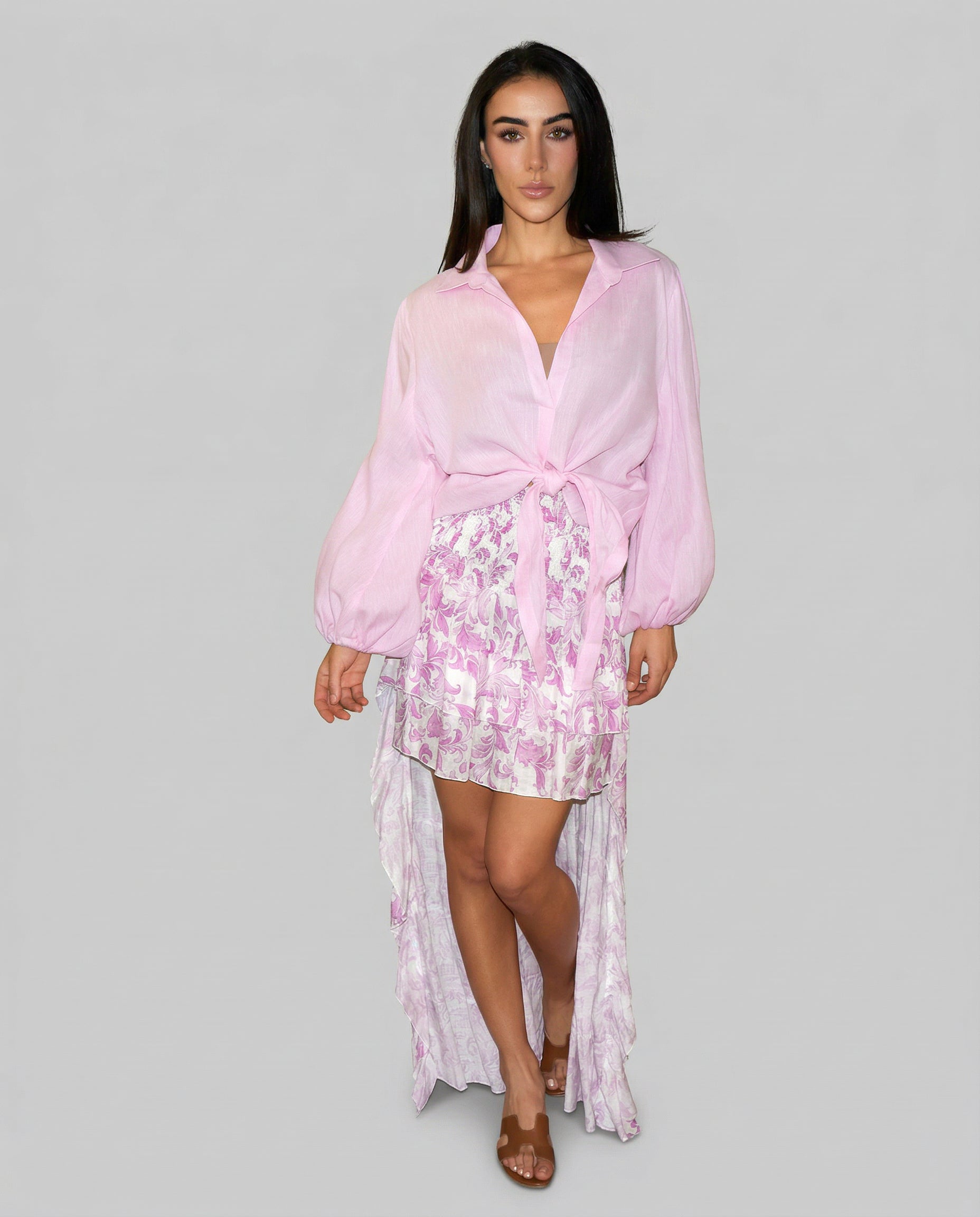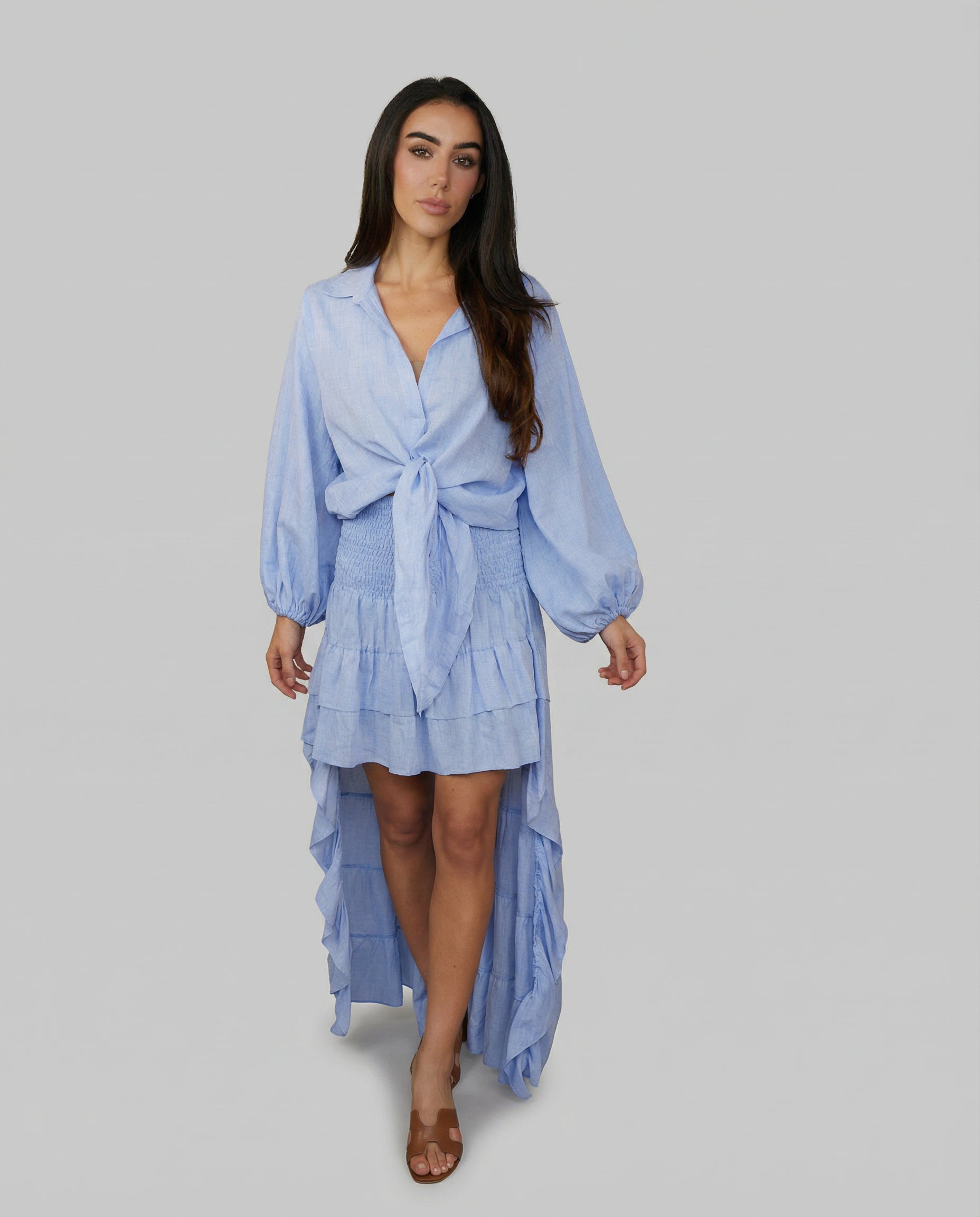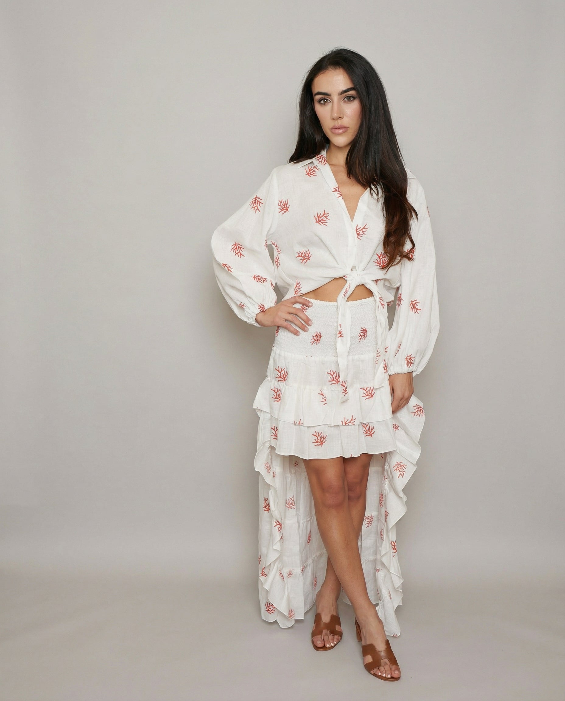 Our signature high-low max-length skirt showcases our favorite prints and colors and a ruffle trim at the hem.