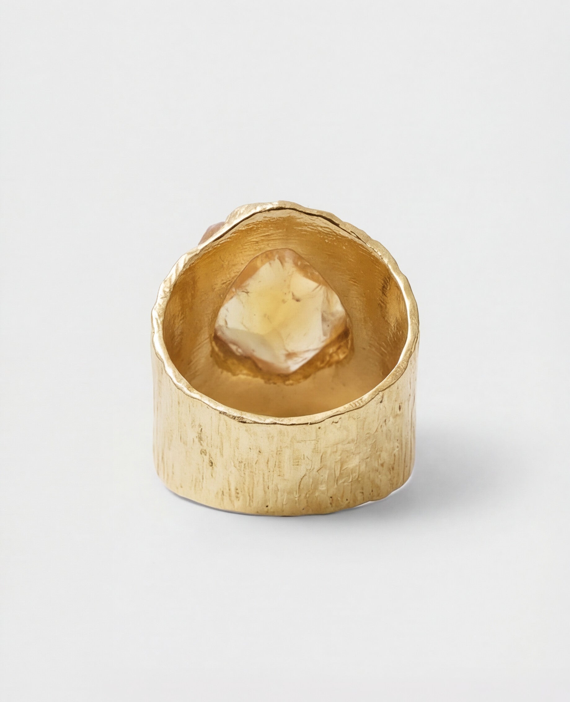 Our iconic Boss Ring was conceived not just as an accessory, but as a partner in crime to wear with intention. Sculptural in design and textured with nature, the hand-etched setting honors each gem rock as a one-of-a-kind statement piece to empower your world. Like a summer vacay for the soul, happy Citrine's warm amber glow literally brings sunshine into your life, and can even ignite your 'golden touch.'