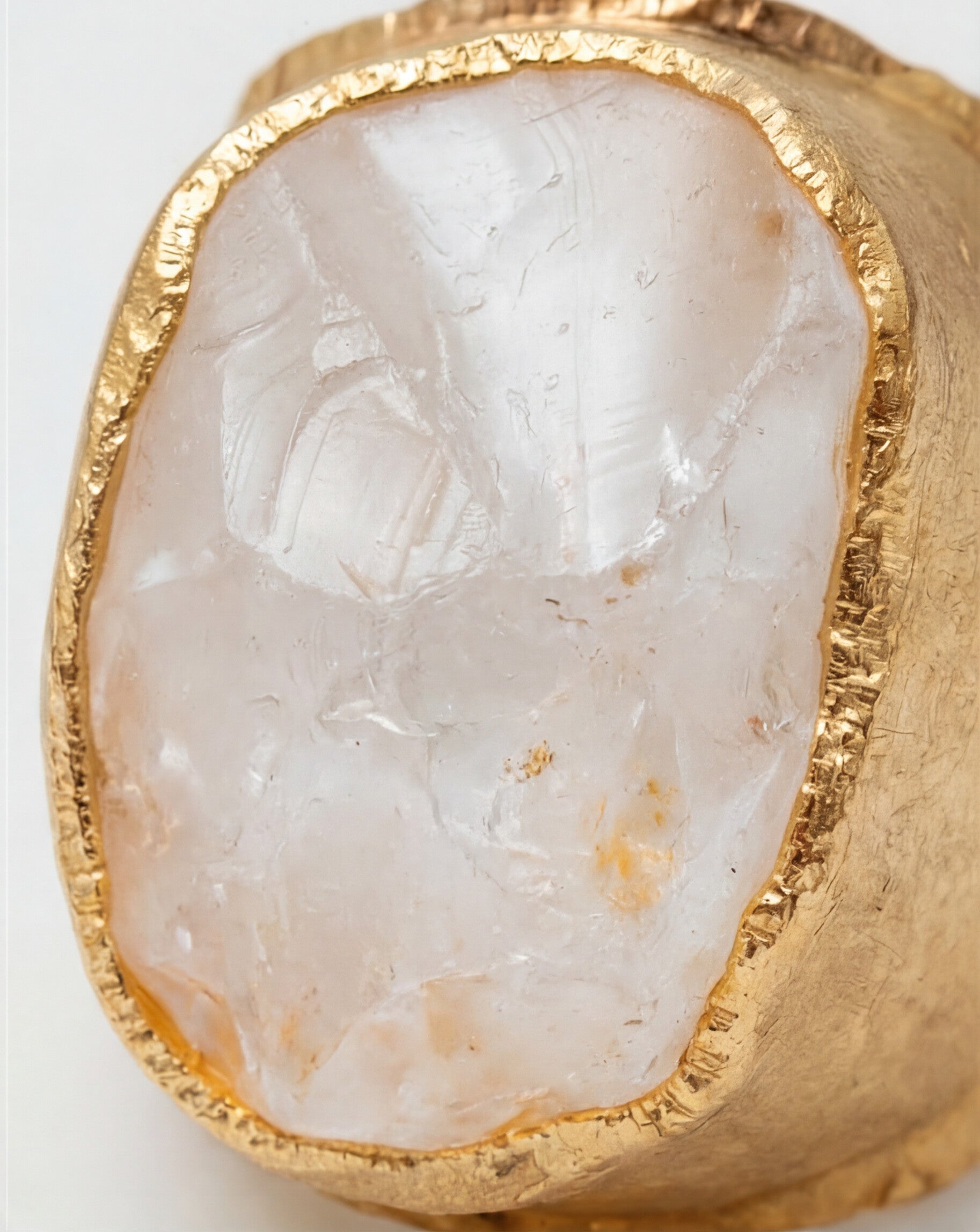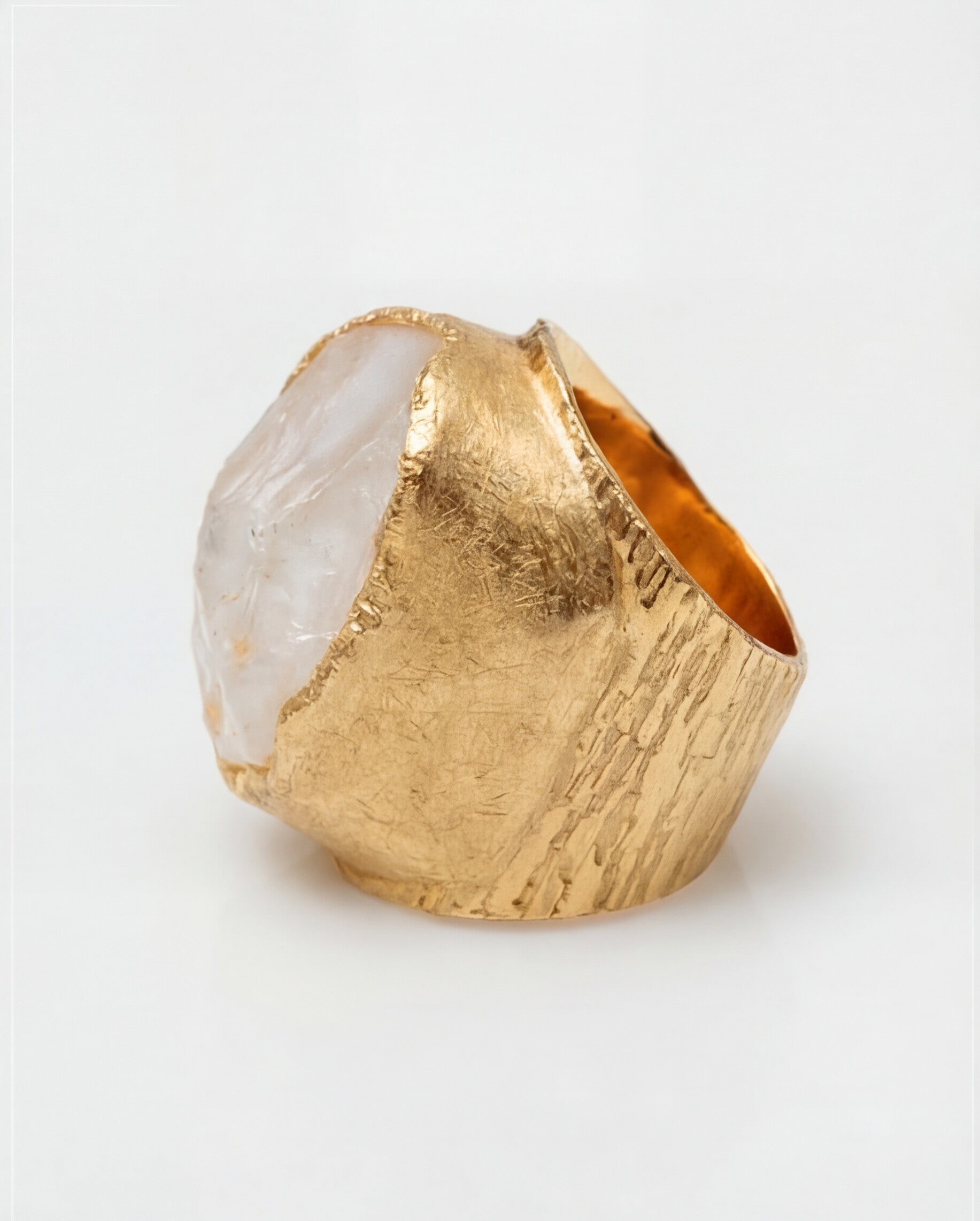 Our iconic Boss Ring was conceived not just as an accessory, but as a partner in crime to wear with intention. Sculptural in design and textured with nature, the hand-etched setting honors each gem rock as a one-of-a-kind statement piece to empower your world. Manifestation power stone, Clear Quartz, brings crystal clear clarity and puts you in the driver's seat of dreams.