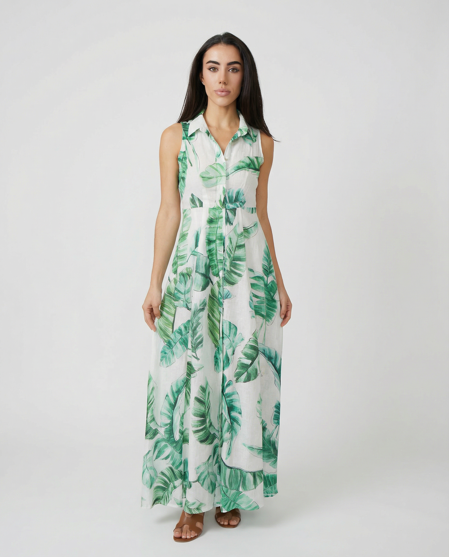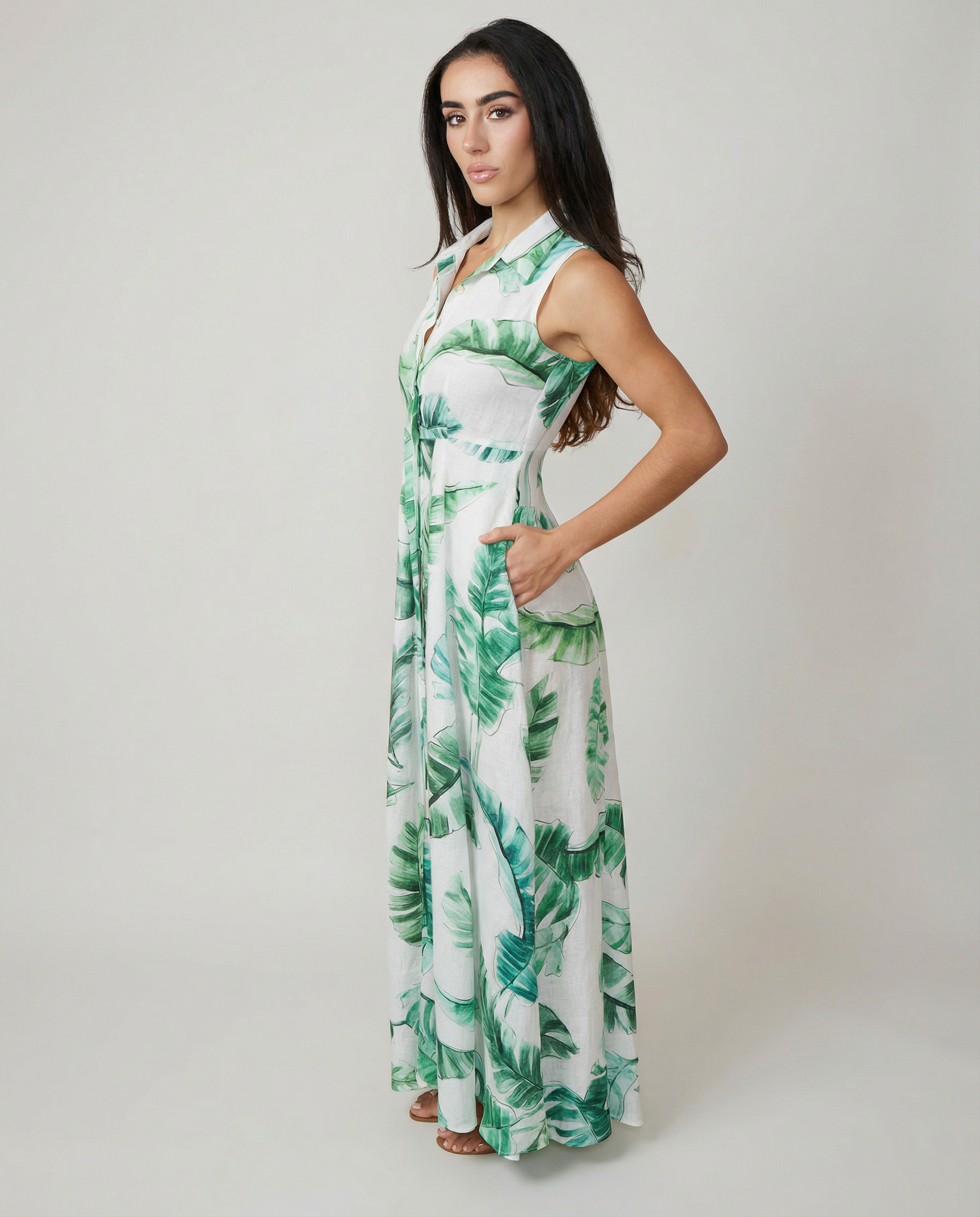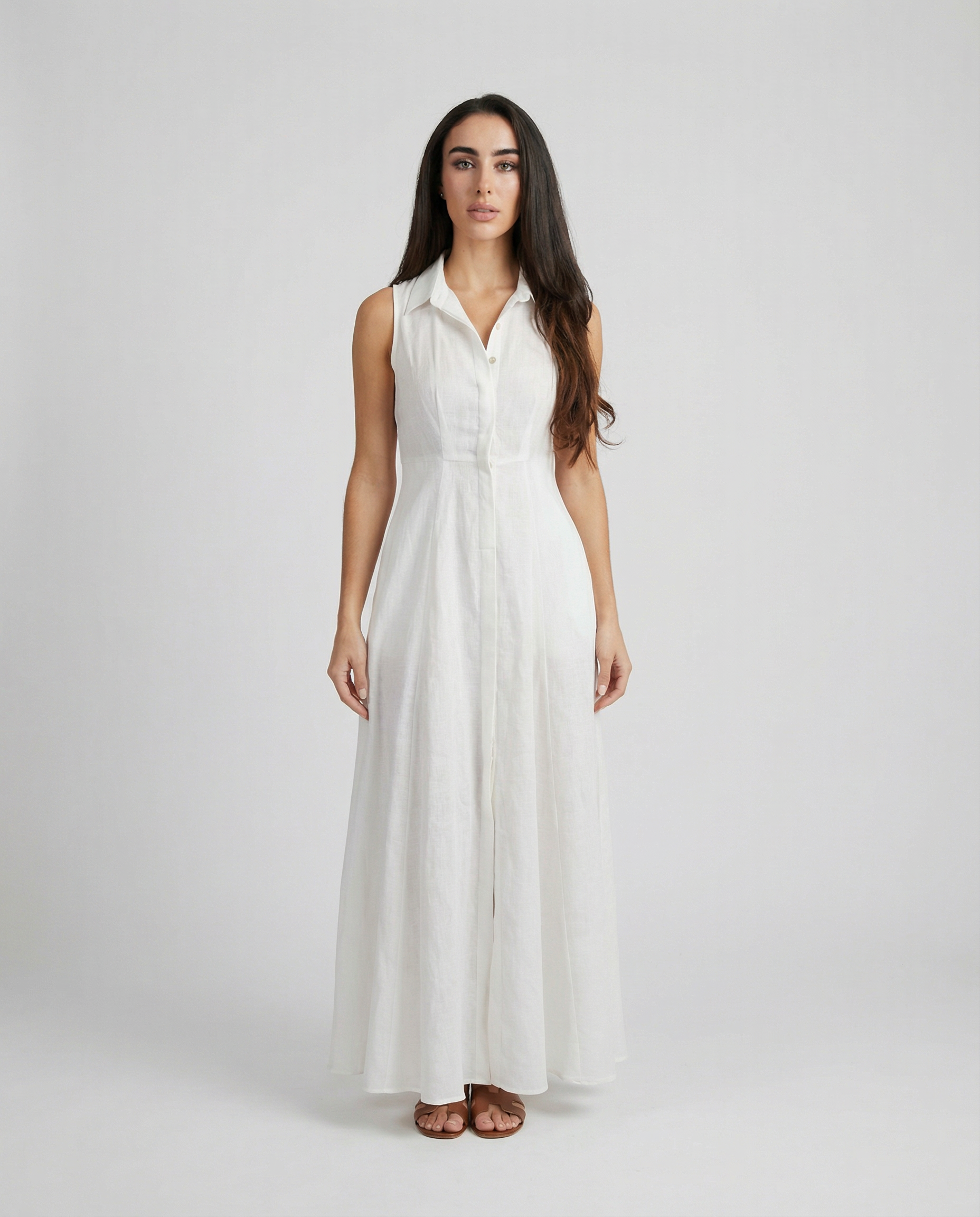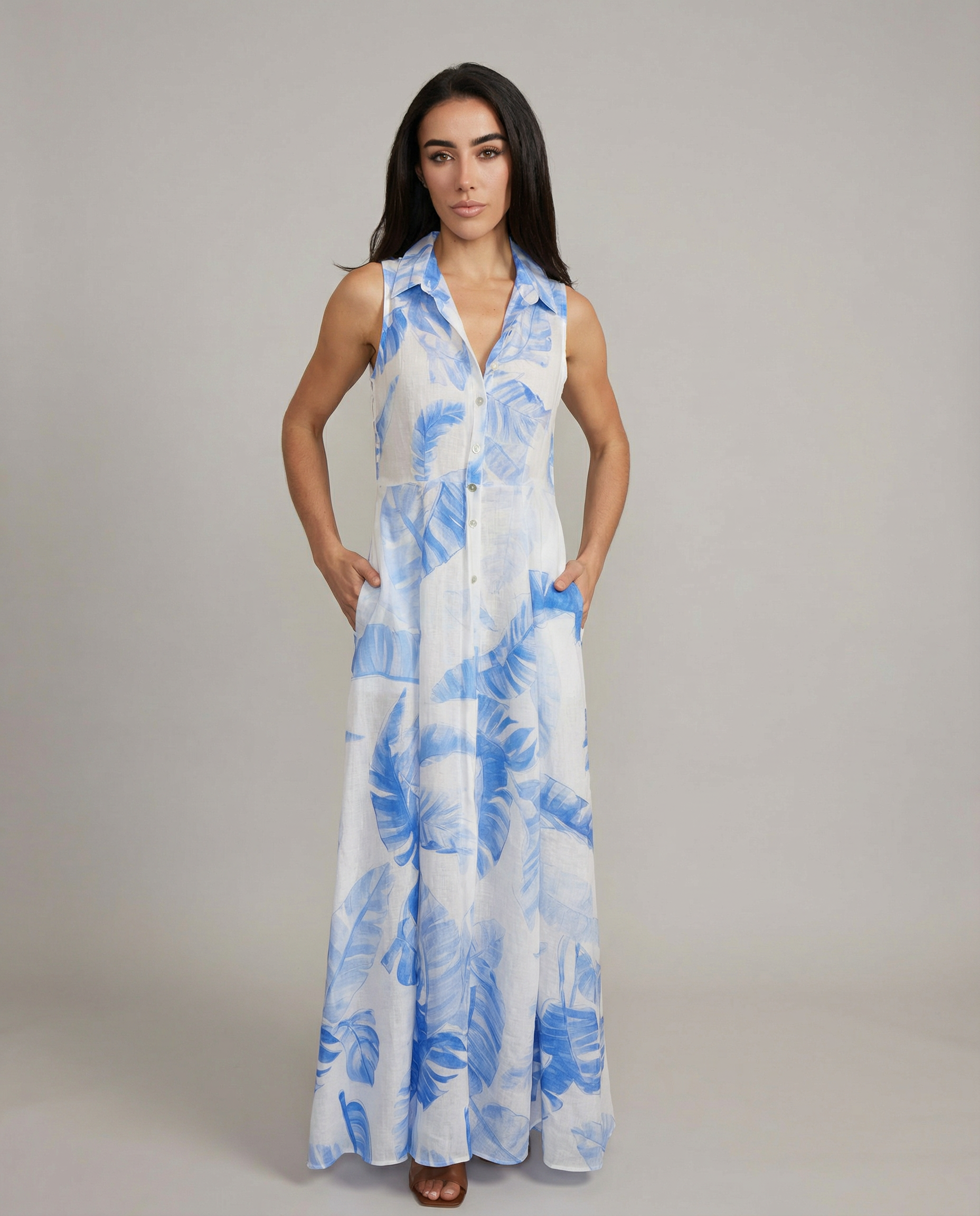 Effortless elegance meets timeless craftsmanship in this sleeveless linen shirt dress, tailored from 100% Italian linen. Front button closure and functional side pockets create a refined silhouette perfect for warm-weather dressing. Pair with our Linen Belt to complete the look—sold separately.