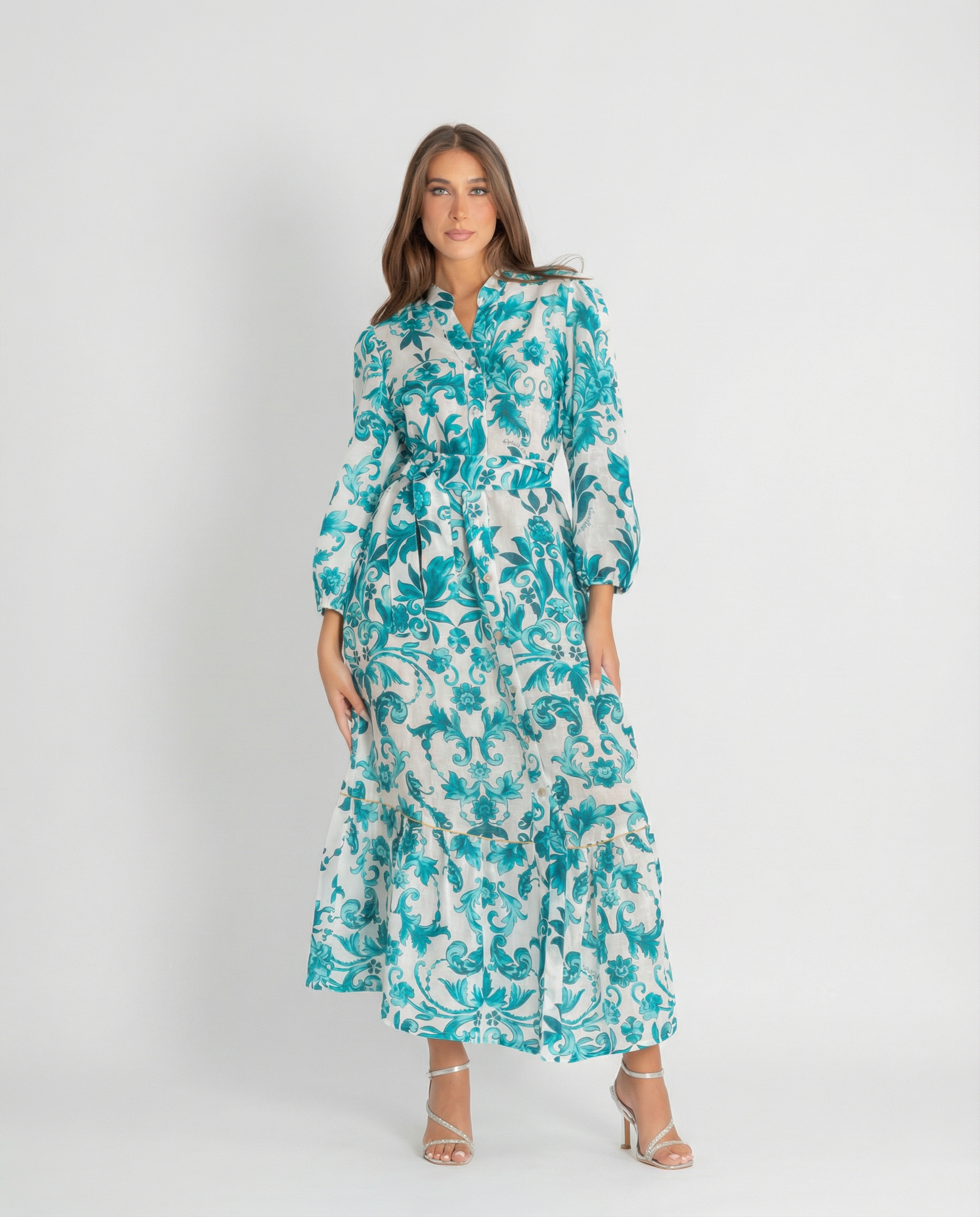 The Positano Dress Nerea is the epitome of Italian luxury, made from 100% Italian linen. With long sleeves and a stylish belt, this dress exudes elegance and Positano style. Perfect for any occasion, elevate your wardrobe with this exquisite piece.