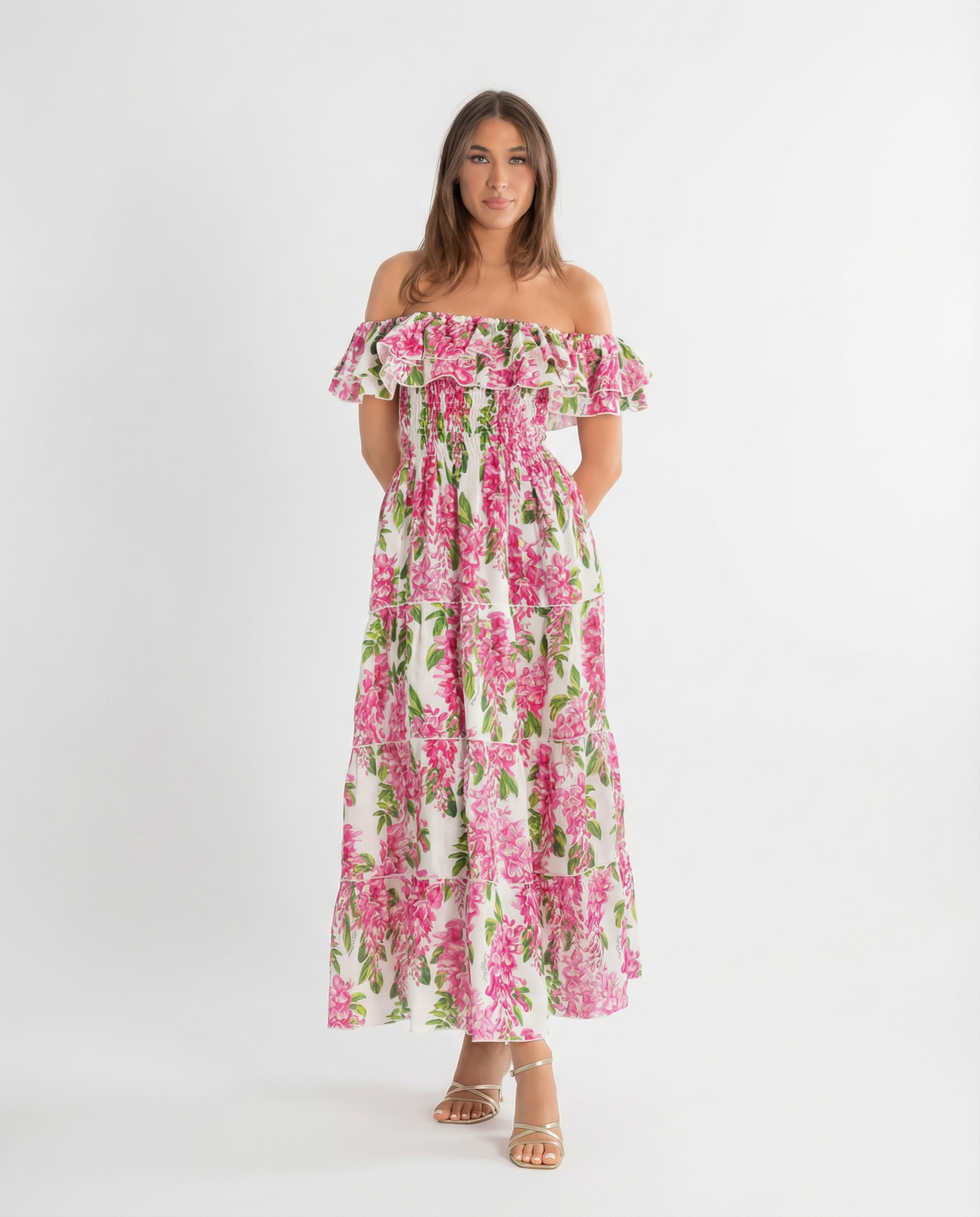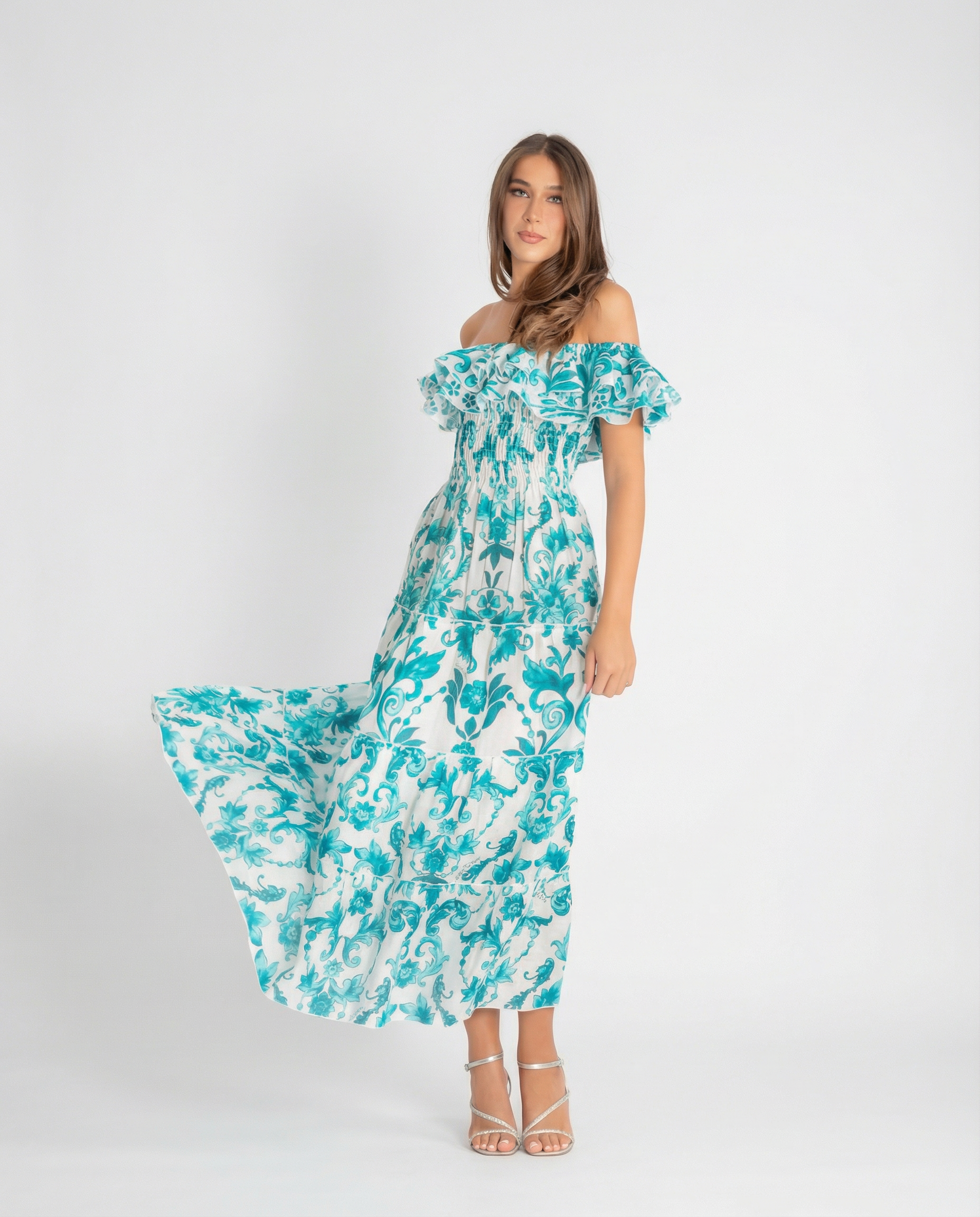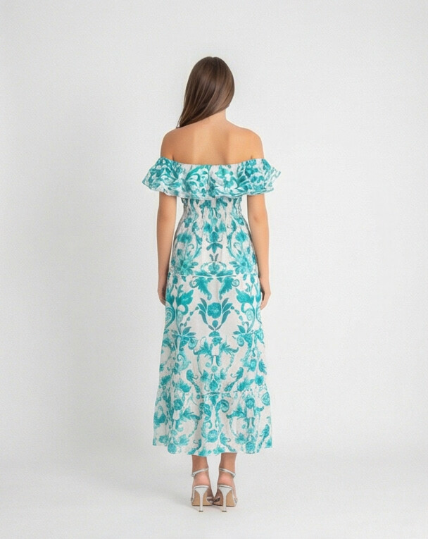 Long dress Positano style, fresh and Mediterranean, with bright colors and nice prints. 100% linen handmade in Italy.
