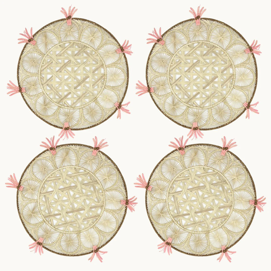 Crafted from 100% Iraca palm, the Palm, Placemat blends natural texture with refined design. Its soft-toned scalloped motif adds a subtle sculptural dimension, enhancing any table setting. Ideal for elevating both casual meals and elegant dinners, this placemat combines durability with sophisticated style.