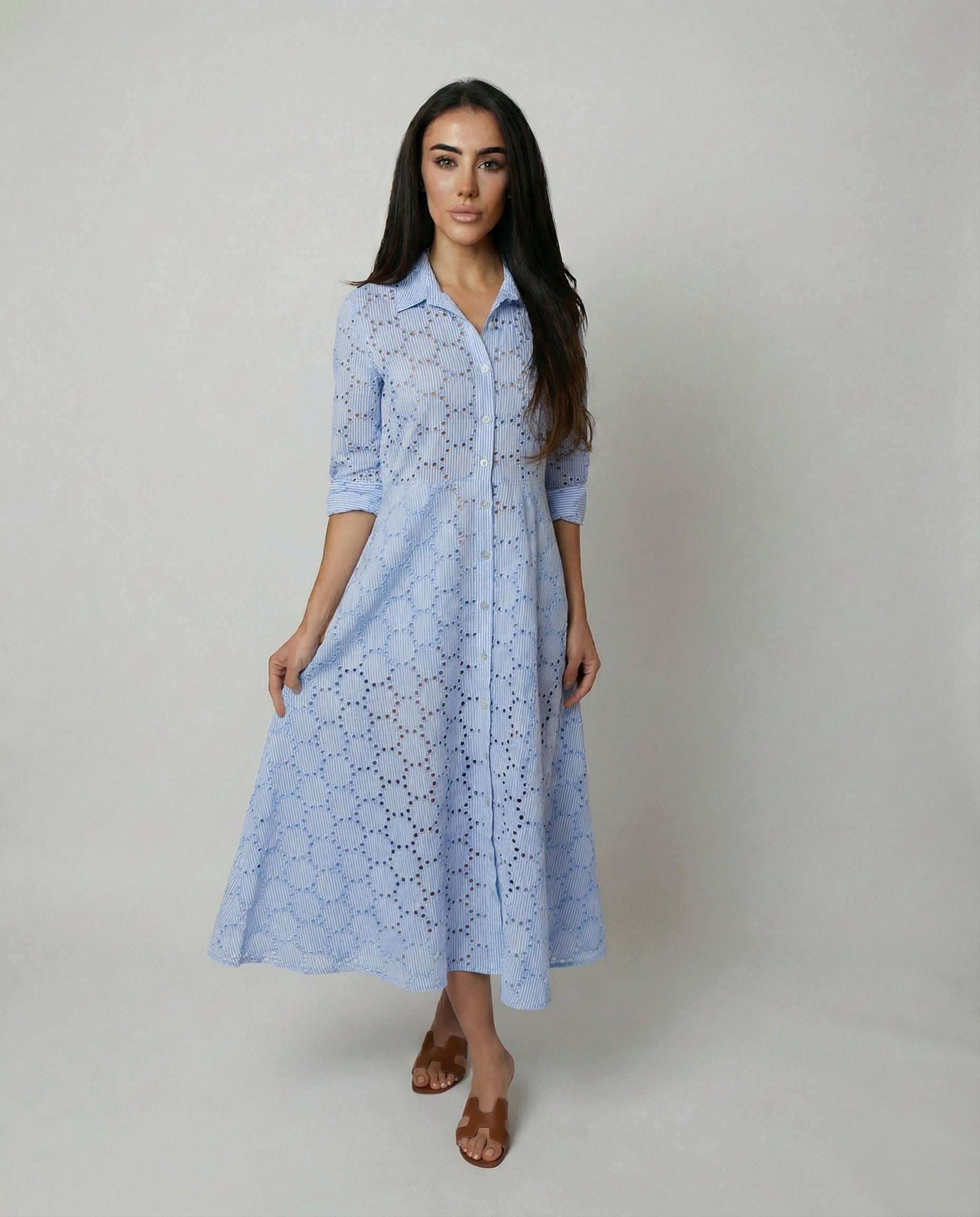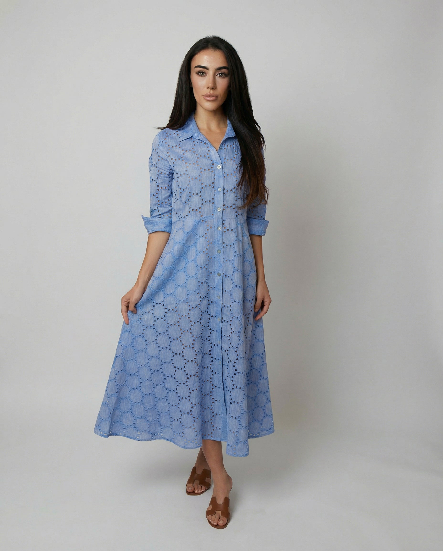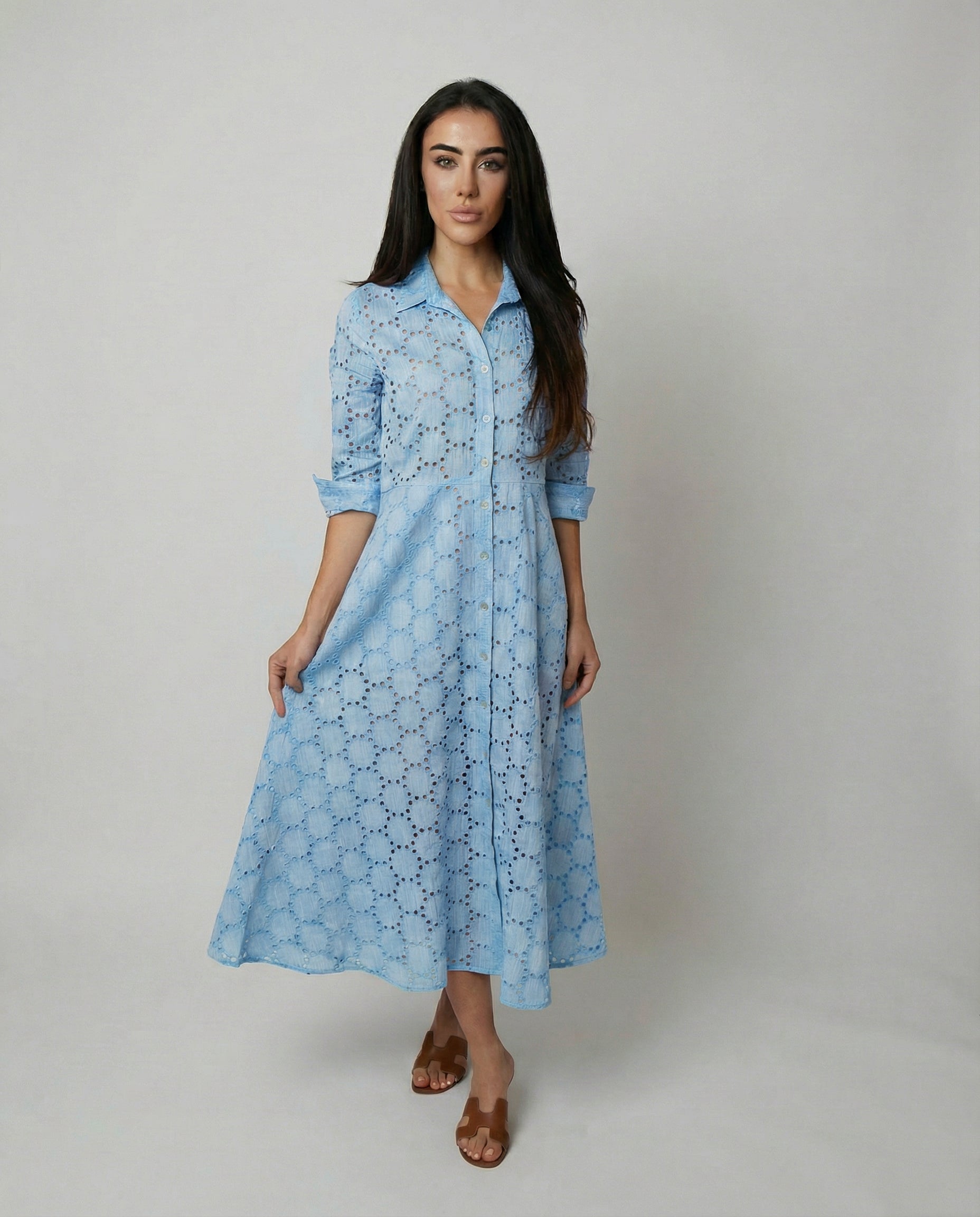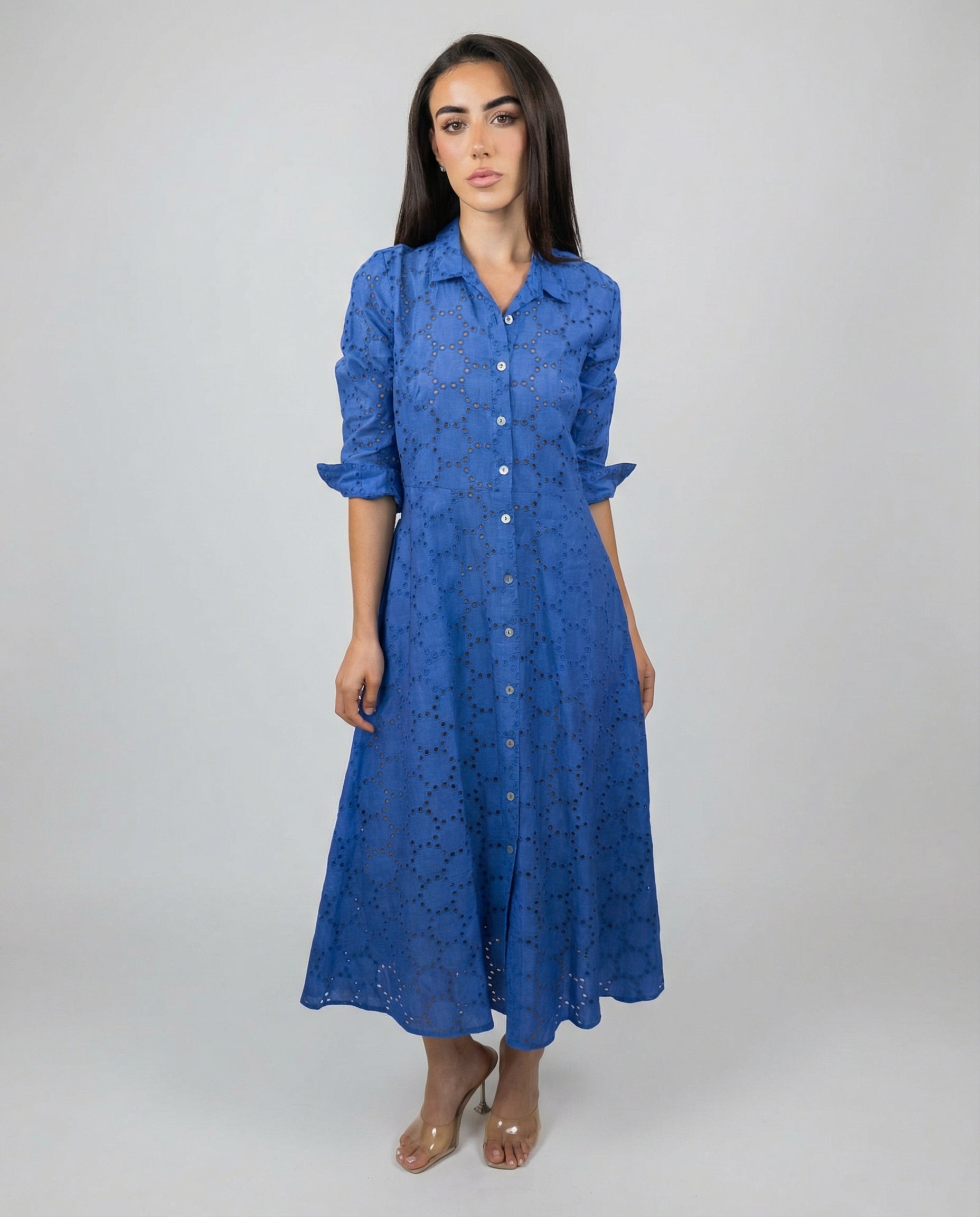 Midi shirt dress available in many colors and print, with pockets and buttons all the way down.