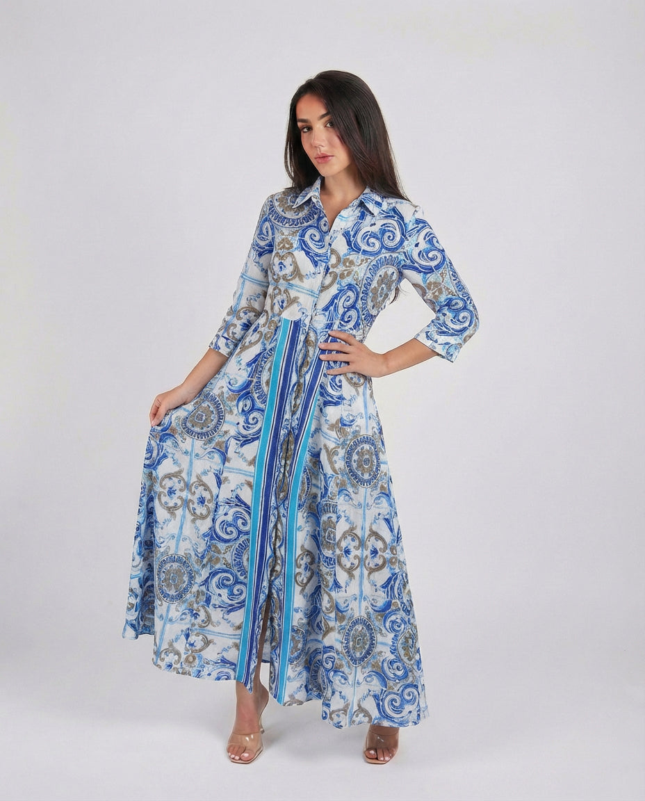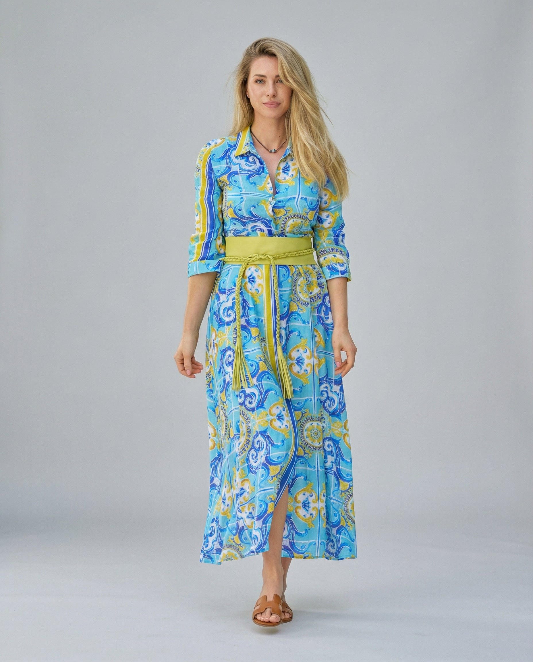 Our shirt dress has everything you ever wanted in a full- length, button-up dress. A long, lean, and lovely silhouette that will elongate your torso. Enjoy the versatility of this dress by wearing it as a dress or open as a duster. Wear it casually by rolling up the sleeves or dress it up with one of our leather rope belts for a perfect resort chic look.