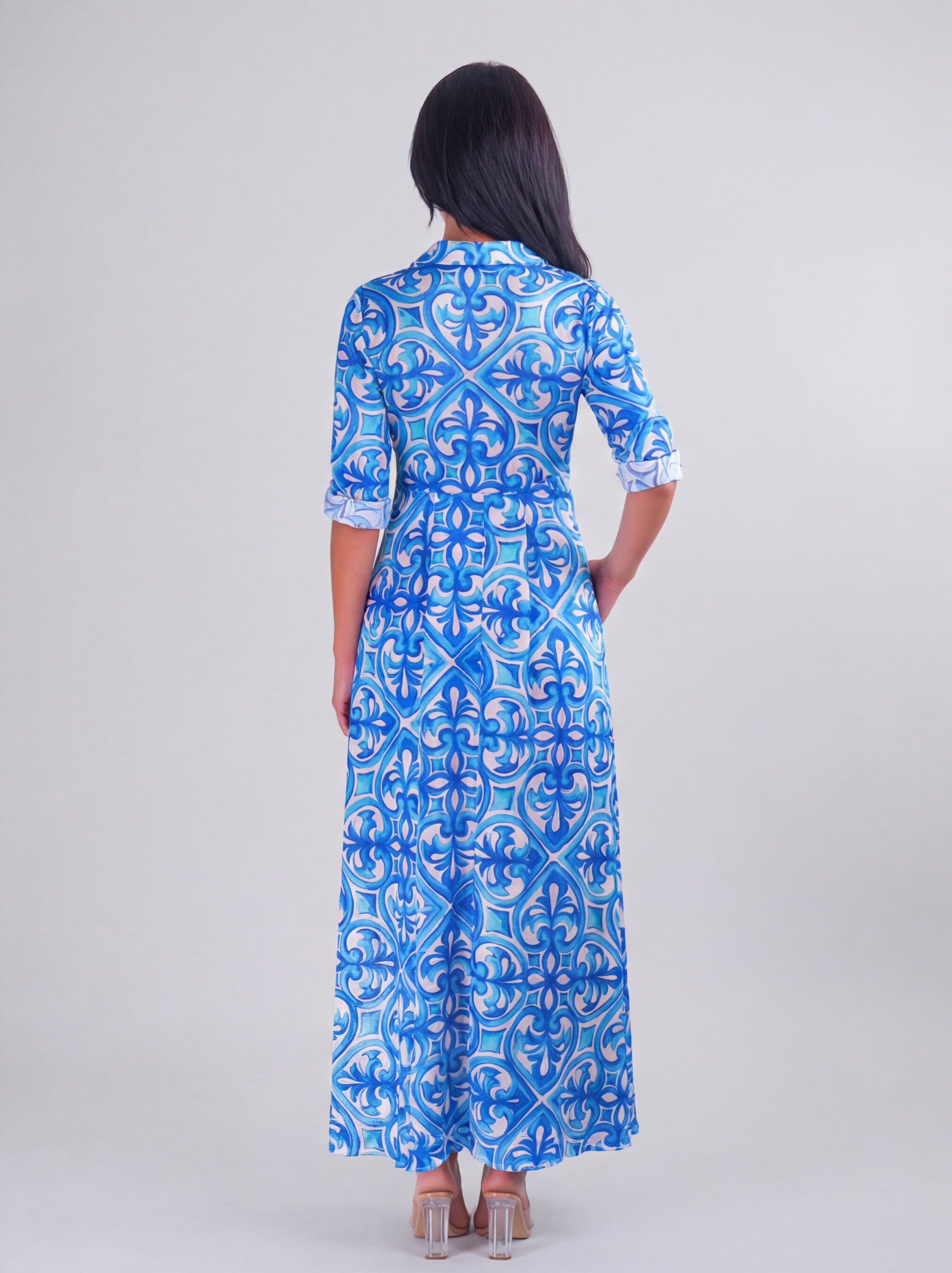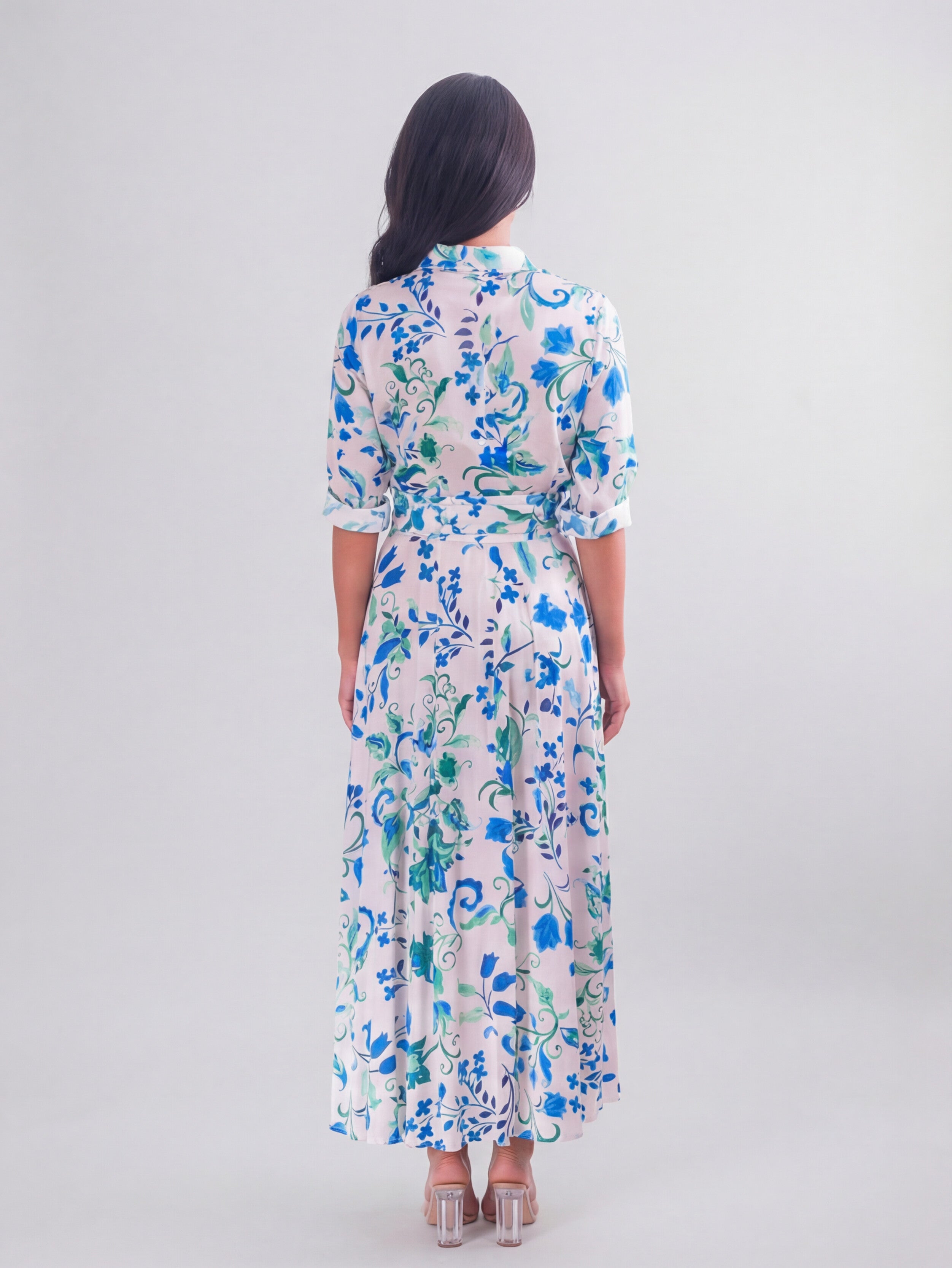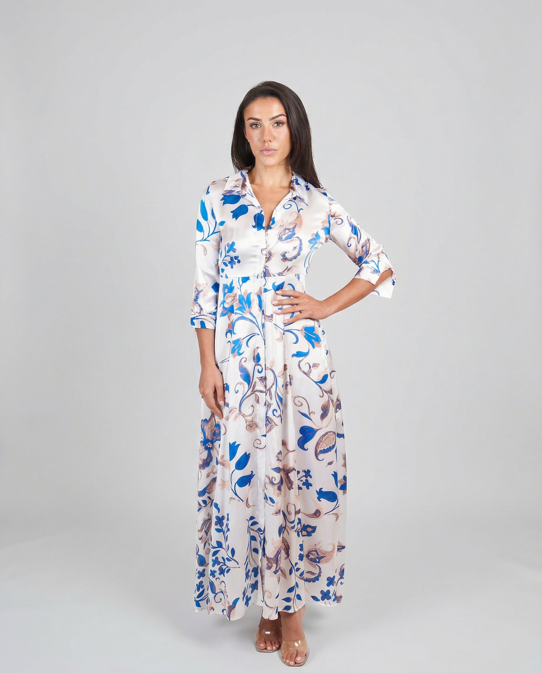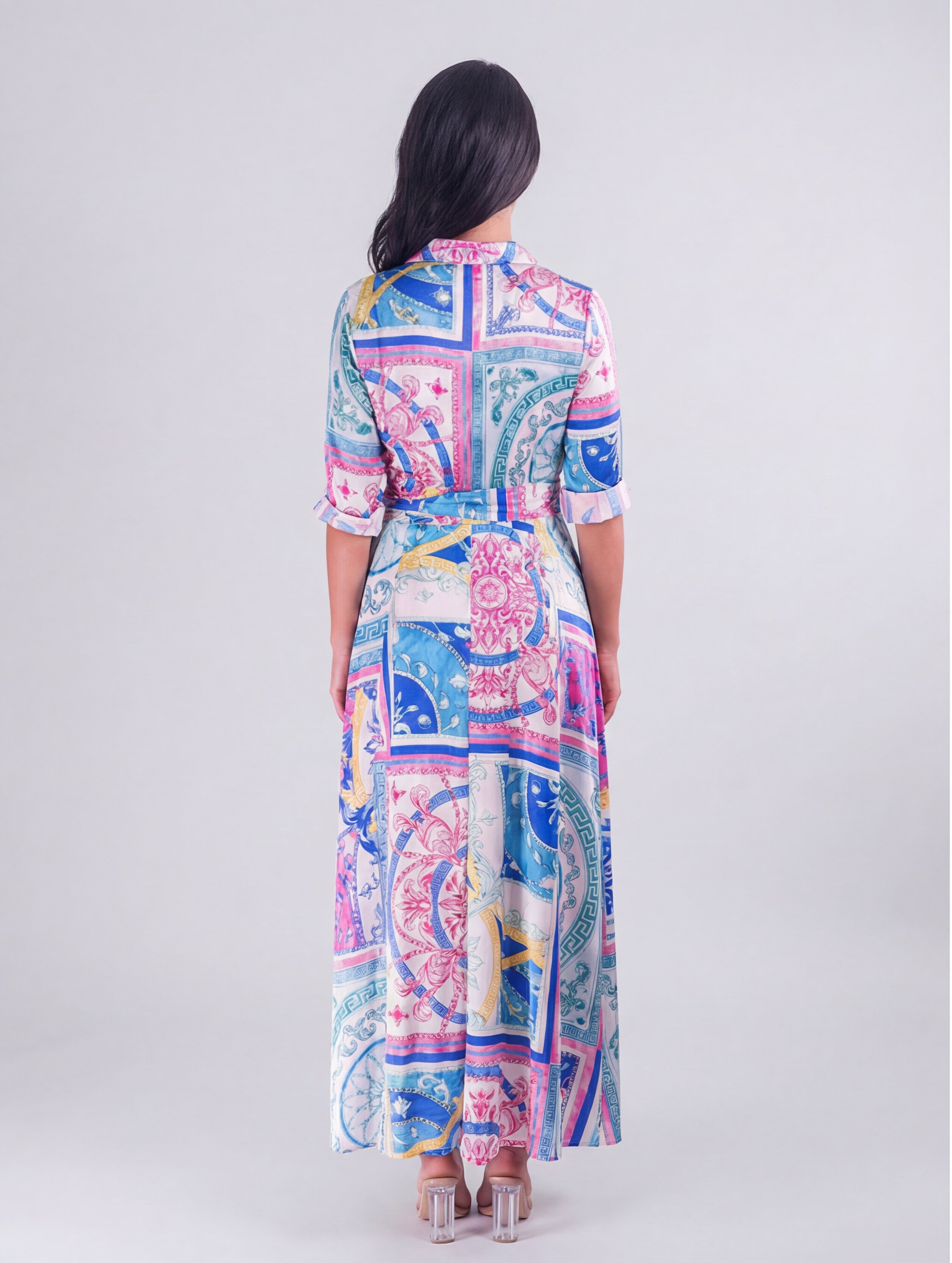 Our Spolverino silk dress features unique prints and colors. Perfectly combining our favorite style elements like the classic silhouette crafted in 100% silk and the traditional point collar with the roll-up sleeves. Is fitted in the waist for some extra definition. Add the matching belt for the complete look.
