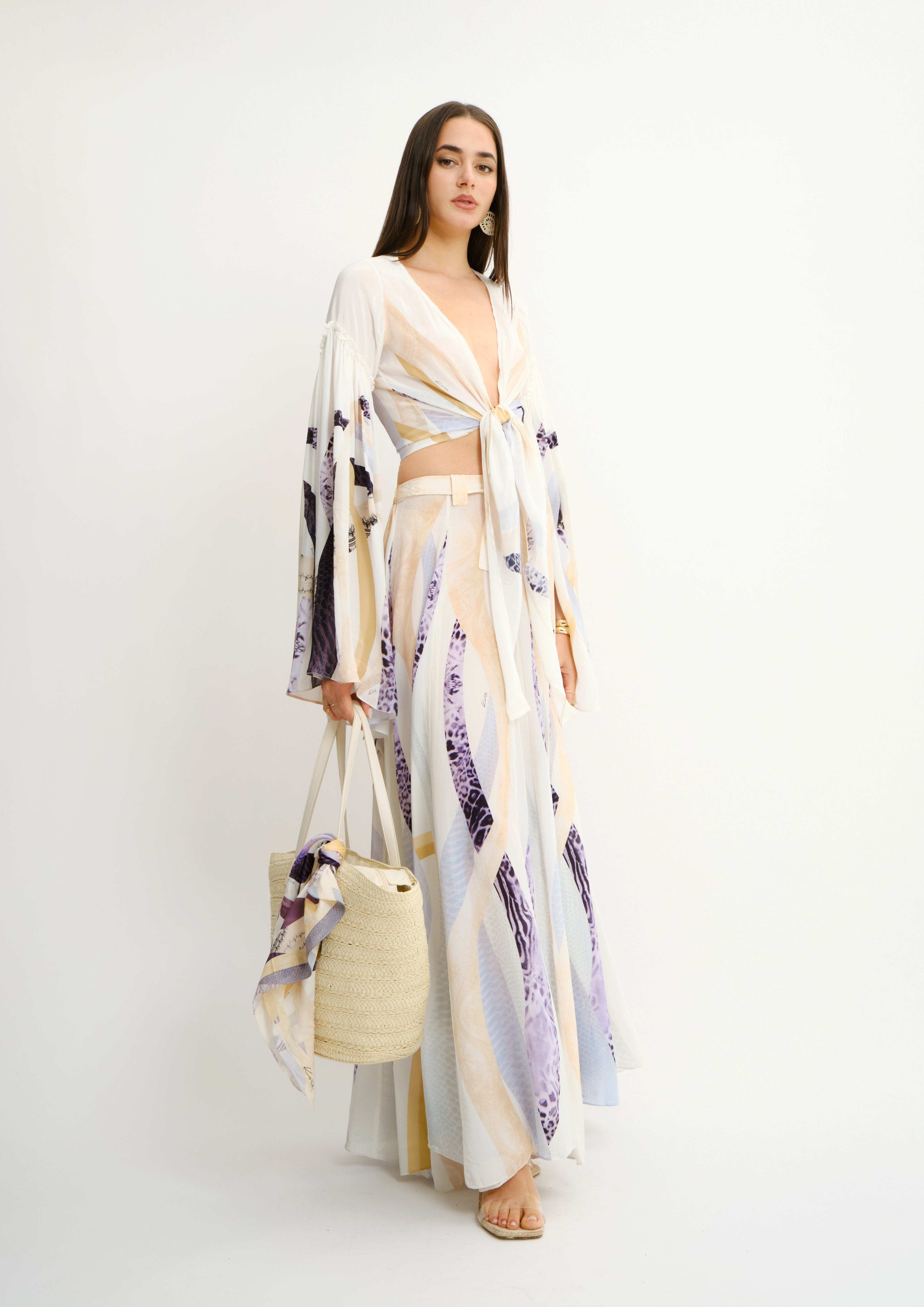Flowing crepe maxi skirt with an adjustable belt that defines the waist and flatters your silhouette. The natural fabric drapes beautifully, creating movement with every step. Perfect for effortless elegance, whether styled for evening occasions or refined daytime wear. A versatile piece that transitions seamlessly from season to season.