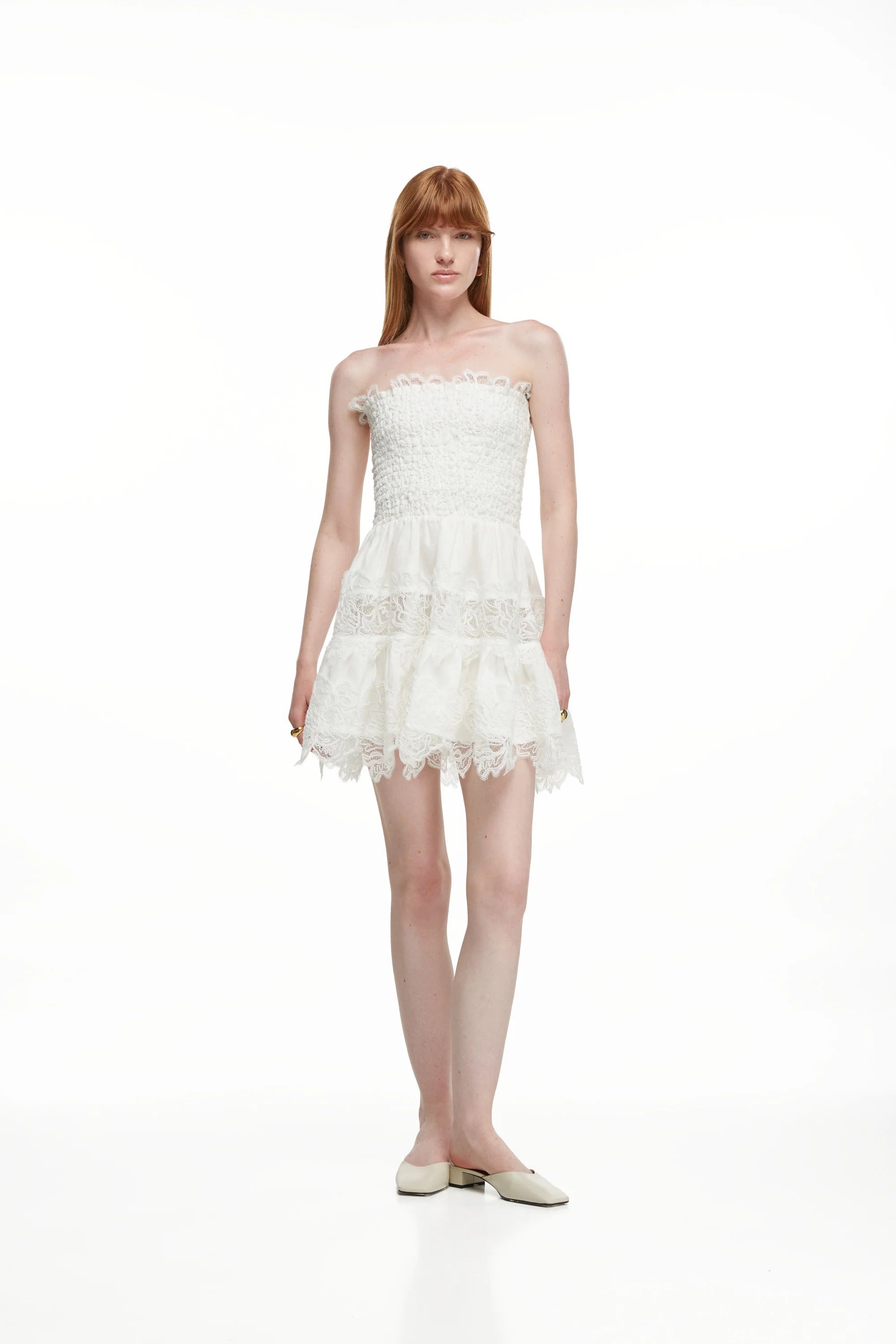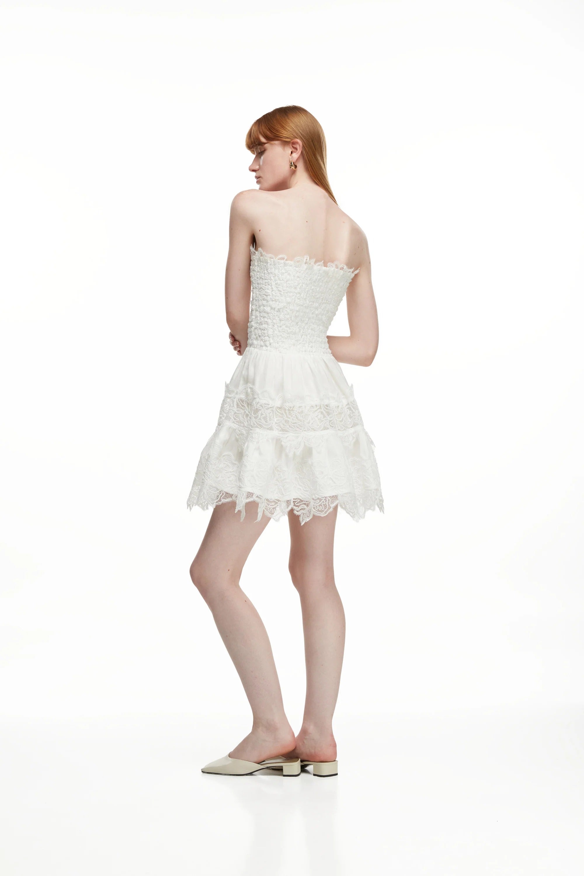 The Brisa Mini Dress, crafted from 100% linen, is an ode to lightness and summer freshness, with a natural charm that invites you to savor sun-drenched days. Its strapless design features a shirred bodice that gently hugs the torso, enhancing the silhouette with comfort and grace, while the layered skirt is adorned with delicate floral lace, adding texture and romance to every movement. Ideal for beach getaways or sunset dinners, this dress pairs perfectly with minimalist sandals or boho-inspired accessories, leaving a trail of fresh, effortless elegance.